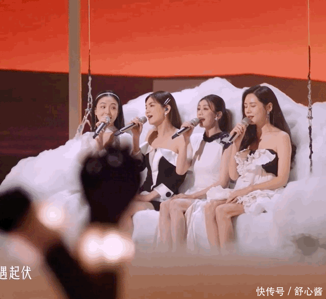 几位姐姐这首歌,从推开门倾吐式吟唱,到坐着云朵升上半空好意思好意思款款唱,舞台的氛围感代入感都可以。
